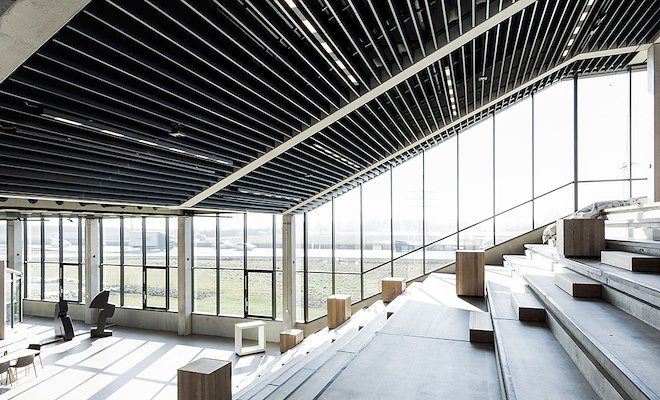 Bovendien bieden de vides in het plafond gemakkelijk plaats aan ventilatie- en verlichtingsinstallaties die gemakkelijk toegankelijk zijn voor later onderhoud" , aldus Frank Kühne, Architect Funser | Kühne Architekten