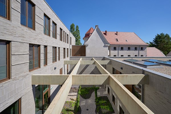 Aan de rand van dat historische park en nabij het jachtslot, bevindt zich het nieuwe, L-vormige gerechtsgebouw van architectenbureau ABELMANN VIELAIN POCK ARCHITEKTEN BDA. Samen met het historische gerechtshof en het aangrenzende gevangenisgebouw, beide uit 1914, vormt de nieuwbouw een besloten ensemble van drie gebouwen rond evenzovele binnenhoven.