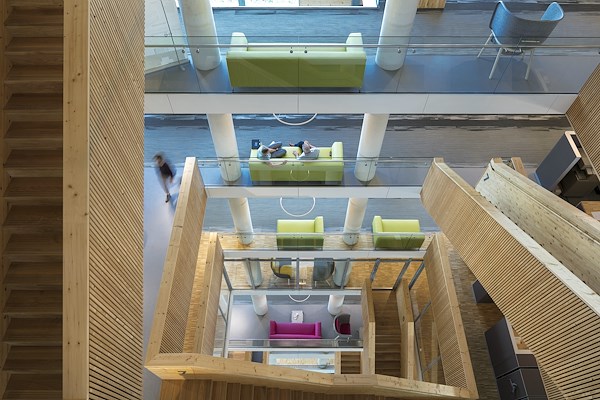 Door de openhuisgedachte waarbij iedereen in dit gedeelte van het gebouw mag komen werken, verbindt het gebouw mensen en werknemers. Daarbovenop, in een beveiligde zone, zijn de kantoren in een toren gepositioneerd. Het geheel vormt één driedimensionale werkomgeving: alles is met alles verbonden.