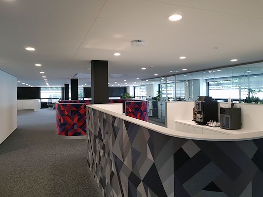 In het kantoor zijn de pantry en de zithoeken met aluminium afgewerkt. Ook zijn er op verschillende plekken aluminium plinten aangebracht, die door Comhan gefreesd zijn. Daarnaast zijn er grote aluminium panelen op de trapleuningen gemonteerd, door een van onze partners.