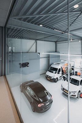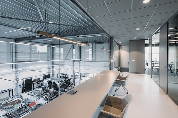 Het industriële pand van Wraptor bestaat uit twee delen: de werkplaats waar het ‘echte werk’ gedaan wordt en een gedeelte met de ontvangstruimtes voor bezoek en ondersteunende kantoorruimtes.