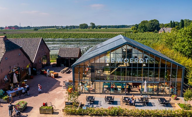 In Ressen tussen Arnhem en Nijmegen, waar vroeger de Bataven leefden en later de postkoetsen voorbij reden, is het moderne fruitbedrijf De Woerdt gevestigd. Sinds 1977 worden hier diverse soorten appels, peren, kersen, morellen, mispels, walnoten en pruimen geteeld. Daarnaast worden er in de landwinkel fairs, excursies, proeverijen en appelplukdagen georganiseerd. Het bedrijf is gevestigd in een eeuwenoude T-boerderij, een monumentale Betuwse boerderij die ooit – uit bescherming tegen overstromingen - werd gebouwd op een hooggelegen plaats, oftewel een woerdt.