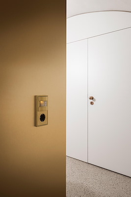 Het gehele interieurontwerp, onder toezicht van Ecker Architekten, geeft een heldere en lichte sfeer. Alle interieurafwerking en details in het interieur – met uitzondering van de gebeeldhouwde balustrade en het plafond in de foyer – zijn helemaal opnieuw ontworpen, inclusief lambrisering, wandbekleding, deurkozijnen, stucprofielen en spiegels. Geheel in stijl is hierbij het schakelmateriaal LS 1912 in Messing klassiek van JUNG toegepast. De moderne tuimelschakelaar in echt metaal is een eerbetoon aan het jaar van oprichting van JUNG en verwijst naar de decennialange ervaring die JUNG heeft in metaalbewerking. Met het handwerk en vakmanschap en het elegante materiaal waarmee LS 1912 gemaakt is vormen zij de perfecte afronding van het interieurconcept van “Villa Schulz”. Perfect in lijn met de tuimelschakelaars van LS 1912 zijn de contactdozen, bewegingsmelders (automatische schakelaars) en videostations voor Deurcommunicatie in LS 990 Messing klassiek toegepast. Beide programma’s zijn onderdeel van de LS range en hebben dezelfde maatvoering en afdekramen.