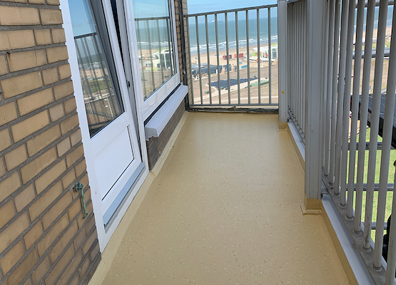 Langs de boulevard van Scheveningen is een royaal appartementencomplex gesitueerd. Een prachtige plek! De bewoners genieten dan ook met volle teugen van hun optrekje met uitkijk op zee. Helaas ontstond er op de balkons na verloop van tijd een verouderde tegelafwerking, die geen bescherming meer bood aan de betonnen constructie. Daarom wenste de opdrachtgever een nieuwe duurzame afwerking als vervanging van de oude tegelafwerking. Daarnaast moest de nieuwe coating, als duurzame bescherming van de constructie, bestand zijn tegen de vele extreme invloeden langs de kust. Te denken aan zout, zand, extreme windkracht en sterke temperatuurschommelingen.