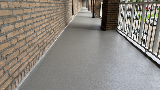 mocht dit project voor zijn rekening nemen en heeft de balkons zorgvuldig gerenoveerd. Er is gekozen voor een volledig gewapend en naadloos systeem, dat de levensduur verlengt en compromisloos beschermd tegen beschadiging en weersinvloeden. Het vangt werking van grotere oppervlakken flexibel op. Schijnvoegen en constructieve dilataties worden naadloos in het geheel geïntegreerd. Tot slot is er gekozen voor een decoratief en antislip instrooimateriaal in een opvallende gele zandkleur. Het gewenste resultaat is zeker behaald: esthetische, duurzame en bovenal veilige balkons die weer voor jaren meegaan.