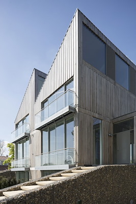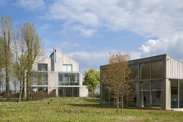 De constructie bestaat uit stalen portalen die de stabiliteit in dwarsrichting verzorgen, zonder stabiliteitskruisen. Daardoor kunnen de gevelopeningen in de voor- en achtergevel maximaal zijn. In de gevelopeningen bevinden zich grote schuifpuien met extreem slanke aluminium profielen. De gevels en daken bestaan uit sandwichpanelen. De sandwichpanelen zijn bekleed met gemodificeerd Amerikaans eiken planken, die onbehandeld blijven en vergrijzen. Het hout verleent de woningen een ontspannen aanblik. De techniek van ‘Zweeds potdekselen’ geeft (door de schaduwwerking) een verfijnde tekening aan de gevels. De daken van de huizen en bijgebouwen bestaan volledig uit zonnepanelen; 60 stuks per woning. De woningen worden verwarmd en gekoeld met een warmtepomp. De ventilatie wordt geregeld door een balansventilatiesysteem met warmteterugwinning. Deze ingrepen maken de woningen energieneutraal. Het stalen skelet, gecombineerd met staalplaatbetonvloeren en sandwichpanelen zorgt voor een zeer laag materiaalgebruik in vergelijking met traditionele bouw.