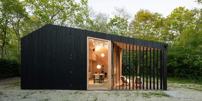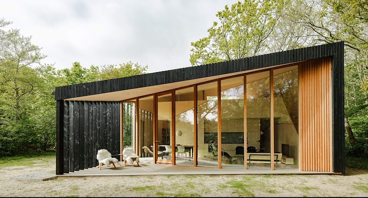 Texel, een eiland in de Noordzee voor de Nederlandse kust, is een populaire vakantiebestemming. Slechts tien minuten lopen van zee is een nieuwe vakantiewoning gebouwd, naar ontwerp van Orange Architects, dat een verblijf belooft dat net zo gezellig als onderscheidend is. Aan de buitenkant is het “Tiny House” bedekt met eenvoudige zwarte beplanking; aan de binnenkant echter worden de gasten omgeven door een warm afgewerkte wanden met licht berkenmultiplex. Verder kijkt de woonkamer via grote ramen aan de zuidkant uit op terras met overkapping.