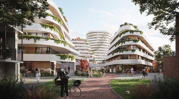 ‘De Groene Vallei’ van Ontwikkelcombinatie Van de Ven en Zenzo, ontworpen door Ossenaar Michael Bol van Buro Kade, schetst wat ruimtelijke kwaliteit betreft een bijzondere, iconische invulling van de locatie die we nog niet kennen in Oss. Kenmerkend is de organische massaopbouw, die reageert op de verschillen in de ruimtelijke omgeving. De vloeiend vormgegeven terrassen met veel groen geven het gebied, samen met het maaiveld een bijzondere nieuwe kwaliteit. Het toepassen van meerdere maaivelden (eerste verdieping, vierde en vijfde verdieping) geven het plan een extra gelaagdheid en nieuwe kansen voor ontmoeting.