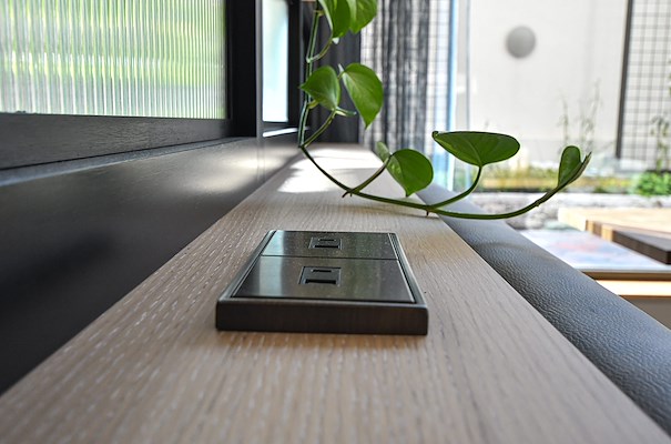 JUNG heeft voor alle 204 kamers schakelmateriaal geleverd, inclusief inbouwdozen, aansluitsnoeren en stekkeraansluitingen. Juist omdat de units in alle kamers gelijk zijn, aan de ene kant van het bed twee schakelaars voor de verlichting en een laadcontactdoos voor mobiele apparaten met USB A en USB C, en aan de andere kant van het bed twee schakelaars en een contactdoos, kon er razendsnel afgemonteerd worden. Daarna diverse (laad)contactdozen, een aansluiting voor de tv en natuurlijk de onmisbare Hotelcardschakelaar. Hierna konden de wanden dicht, en zo ging Steegman stapsgewijs alle 204 kamers af.