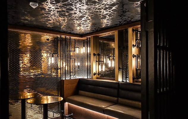 Voor de cocktailbar is uitsluitend de warme tint Messing klassiek gebruikt, die naadloos aansluit bij de donkere maritieme sfeer van de Ultramarijn Wonderbar.