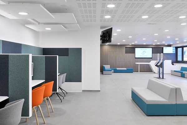 Dankzij het gebruik van vloerbedekkingen uit de collecties EXPONA SIMPLAY en SimpLay ACOUSTIC CLIC konden de renovatiewerkzaamheden worden uitgevoerd zonder onderbreking van de dagelijkse ONSS-diensten. Deze twee collecties bieden unieke productkenmerken die niet alleen in kantoorruimten hun voordelen bewijzen: