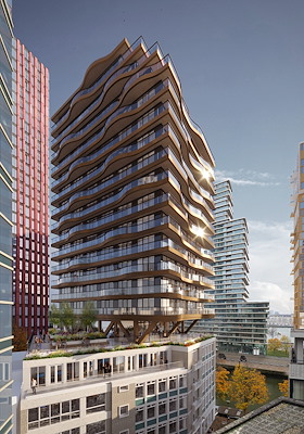 Riva is ontworpen als ‘optopping’ en staat zo in mooi contrast met de bestaande bebouwing. De 56 appartementen hebben veel transparantie en een breed uitzicht op de haven en het stadscentrum. De golvende buitenruimtes zijn een knipoog naar het water en de historie van het gebied. Door de ruime afmetingen zijn ze een verlengstuk van de appartementen en creëren ze zo een bijzondere en ruime leefomgeving middenin de stad.