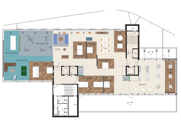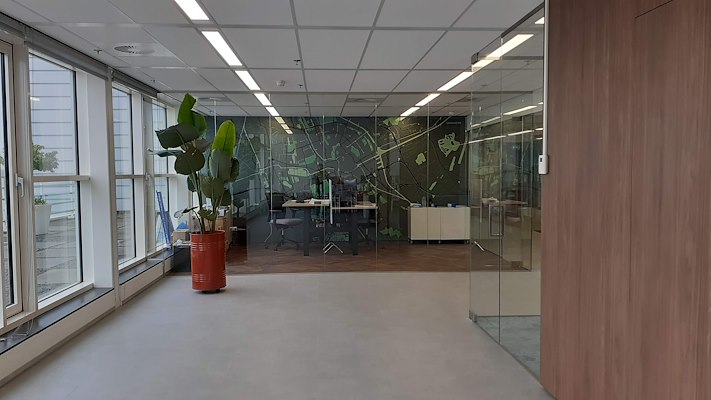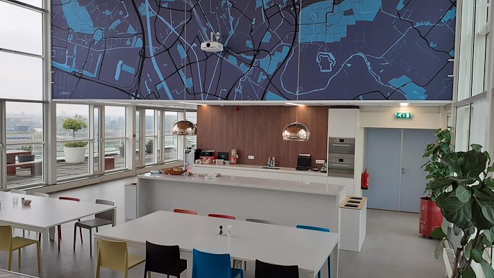 In het markante FLOW-gebouw aan de A2 in Utrecht heeft Improvers samen met Hof hun nieuwe kantoor betrokken. Het ontwerp dat ik hiervoor gemaakt heb moest zorgen voor een open maar toch intieme en prettige werksfeer. Door een samenspel te maken van transparantie en doorkijkjes waan je je in een stad waar op elke hoek iets nieuws te beleven is! Over steden gesproken... Op de wanden van de flexplekken en kantoren zijn de steden afgebeeld waar Hof en Improvers actief zijn: Groningen, Amsterdam, Utrecht en Eindhoven. Deze zijn uitgevoerd in PET vilt, zo zorgen ze ook voor een prettige akoestiek in de (open)ruimtes.
