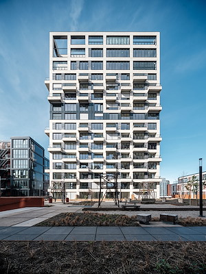 De architectonische frontrunner van het voormalige NDSM-terrein, zo typeert de Architekten Cie. het Amsterdamse woonwerkgebouw Pontkade. De Architekten Cie. ontwierp Pontkade als een ensemble van vijf autonome volumes met referenties aan het industriële verleden van het plangebied – en aan de toekomst als hoogstedelijk woongebied. Een van de twee woontorens van Pontkade kreeg aan de gevels de Hagmeistersorteringen Weimar HS en de Dallas FS in moduulformaat.