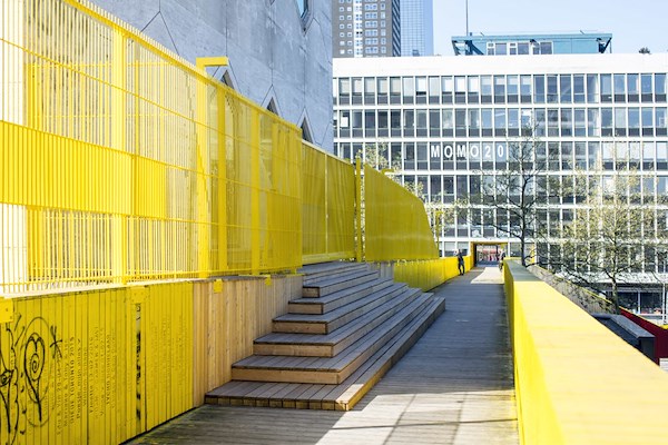 Deze 400 meter lange houten loopbrug in het hart van Rotterdam is door de jaren heen uitgegroeid tot een iconisch object. Aan de loopbrug ligt het voormalig Shell kantoorgebouw, waarin nu ‘Laatbloeien Werkt’ is gehuisvest.