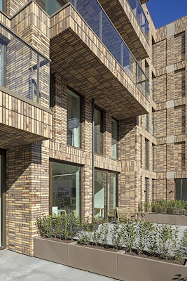 De projectsortering "IJburg" bestaat uit zand- en bruinkleurige bakstenen, die met hun kleur refereren aan het eiland en aan het nabijgelegen stadsstrand. De stenen hebben gesinterde accenten die wat ruwer en donkerder zijn, gecombineerd met gladde delen. De stenen zijn afwisselend met voor- en fusszijde als hoeksteenstrip meegestort in de prefab geveldelen.