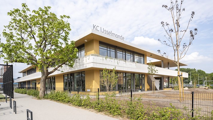 Het KC IJsselmonde is een fusie van twee reguliere basisscholen, één school voor speciaal basisonderwijs en opvangorganisaties. “Het fijne daarvan is,” zegt directeur Thomassen, “dat broertjes en zusjes naar dezelfde school kunnen gaan. Daar worden ze blij van.” Ze gaan door dezelfde voordeur en komen elkaar tegen op het speelplein. Thomassen vindt ook de royale buitenruimtes in het ontwerp van grote meerwaarde in deze wijk: “Veel kinderen hebben thuis geen tuin en veel ouders willen niet dat hun kinderen buitenspelen, omdat ze dat onveilig vinden. Des te belangrijker dat dat bij ons kan.”