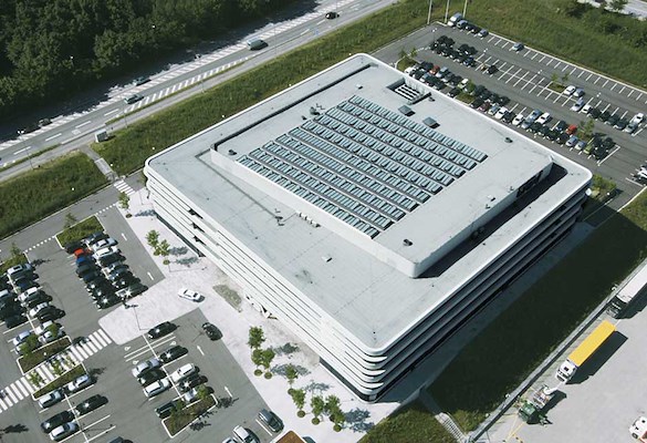Het nieuwe kantoorgebouw, dat werd gebouwd rond een groot atrium en voorzien van 900m2 VELUX modulaire lichtstraten, brengt dag en nacht frisse lucht in elke hoek.