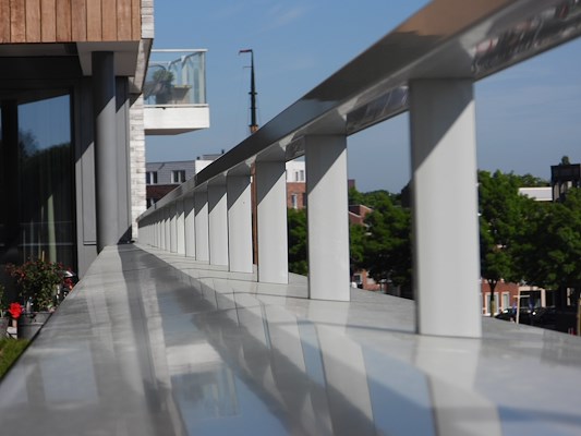 Aluminium balustersysteem verzonken in muurkap