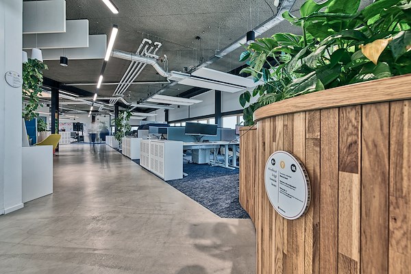 James is specifiek trots op een realisatie in het kantoor: “Voor mij zijn de eyecatchers in het ontwerp de bolvormige armaturen in het werkcafé. Deze straatlantaarns zijn afkomstig uit de Breestraat in Leiden en speciaal voor dit project geschikt gemaakt voor hergebruik. De armaturen zijn in onze fabriek omgebouwd tot energie-efficiënte LED armaturen. Vanuit de circulaire ontwerpgedachte van re-use en refurbish.”