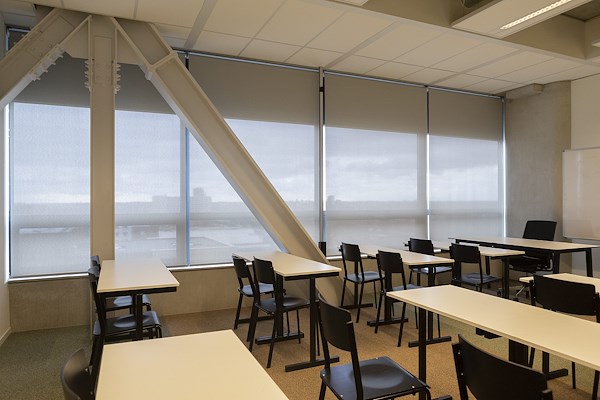 Our Premium Plus roller blinds are located in classrooms, meeting rooms and common areas. Their combination with a Polyscreen 650 with a 3% of openness factor allows solar protection while maintaining all views of the surroundings.