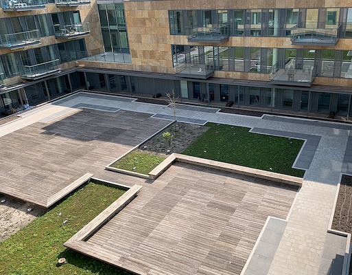 Het nieuwe appartementencomplex, wederom een eyecatcher van Eindhoven, vroeg om een fraaie, groene binnentuin die zou dienen als ontmoetingsplek voor de bewoners. De uitdaging bij dit project was de afdichting van verschillende betonnen delen.