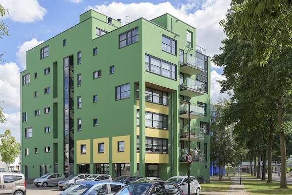 Gevels met uitgesproken kleuren behouden hun uitstraling niet vanzelf. Slim vastgoedonderhoud is nodig om ervoor te zorgen dat gebouwen hun aantrekkingskracht en visuele waarde behouden. De Fumahout-flats, opgeleverd in 1996, leken aanvankelijk een voorbeeld te worden hoe het nÃét moet. De eigenaar van de gebouwen, woningcorporatie Vidomes, zag met lede ogen aan hoe de frisse kleuren op de gevels al na enkele jaren fletser en valer werden. In opdracht van Vidomes deden verschillende schildersbedrijven een poging om het probleem op te lossen, maar zonder succes.