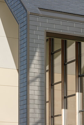 en strakke langsgevels, die integraal bekleed zijn met leisteengrijze Cedral New Stonit leien.
