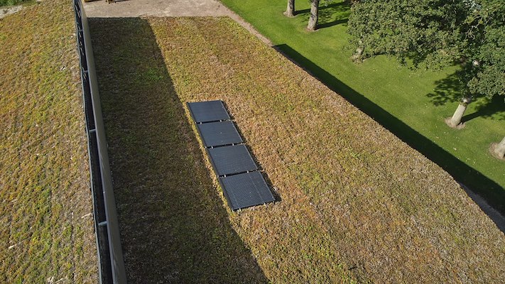 Het hellende groendak draagt bij aan de lokale biodiversiteit
