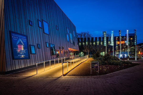Het nieuwe uiterlijk van het Amphion Theater in de Gemeente Doetinchem, ontworpen door Mecanoo, springt eruit! Nu theaters weer open zijn, kunnen bezoekers goed verlicht geleid worden naar de entree en genieten van het brede cultuuraanbod van het Amphion.