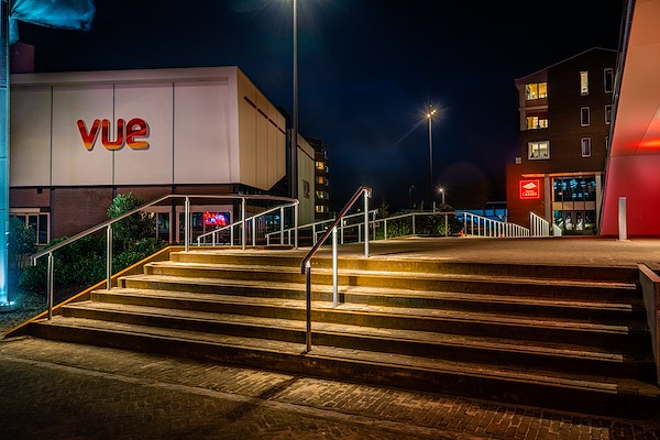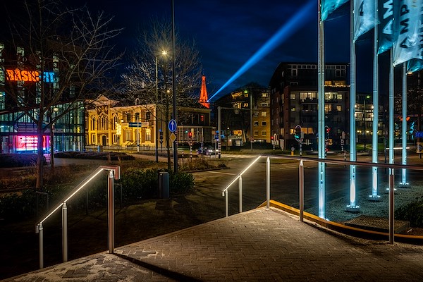 Onze bijdrage bestond uit het ontwerpen en realiseren van het leuningwerk met LED verlichting. Functionele en tevens stijlvolle verlichting op de trappen en de hellingbaan. De nieuwe standaard voor trapverlichting in de buitenruimte!