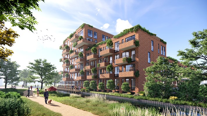 In Gouda aan de Sportlaan hebben wij een bijzonder (groen en sociaal) appartementengebouw ontworpen met 24 zorgappartementen, 59 seniorenwoningen en een bijeenkomstruimte. Het natuur inclusieve pand ontleend zijn karakter aan de groene daken en balkons. Er zullen bomen en (moes)tuinen op komen voor een gezonde en duurzame omgeving.