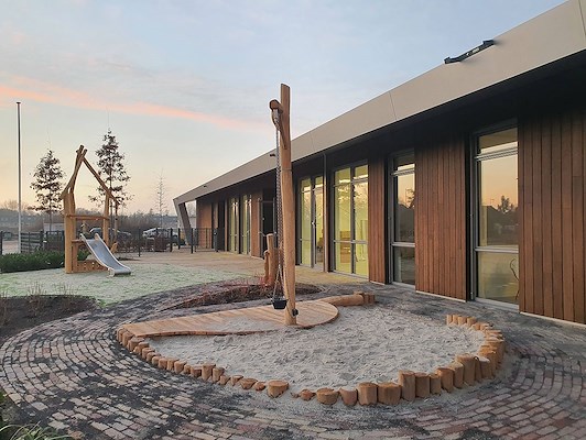 In Voorthuizen is door No Label een markant onderwijsgebouw gerealiseerd: de nieuwbouw van kindcentrum De Vlindertuin.