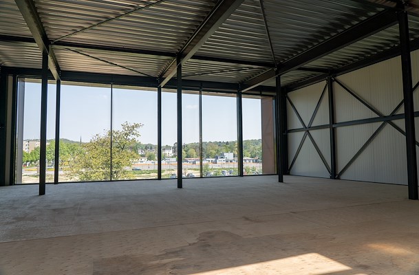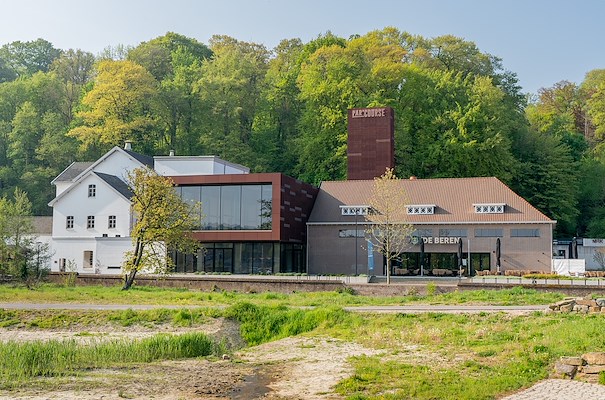 In het concept van Par’Course neemt de brouwrij een voorname rol in. Tussen de gerestaureerde watermolen en het bijgebouw ontstond door de verhuizing van de silo’s een gat. Dit bood Moederscheim de mogelijkheid om een nieuw bouwvolume voor de horeca te ontwerpen. “Dit gebouw moest echt een verbinding met het landschap maken. Je kijkt immers uit op de meanderende Geul. We kozen voor een groot venster gericht op de rivier. Een afwijkend formaat. Gevelbouwer Stalumex verzekerde ons dat dit geen probleem moest zijn. Uiteindelijk kon Reynaers Aluminium als enige dit kozijn leveren. Dat heeft echt grote invloed op de uitstraling van het terrein. Het is samen met het verticale herkenningspunt een echt landmark. Door de coronacrisis is het lastig gebleken om huurders te vinden. De potentie is er, dus dat moet goed komen.”