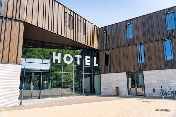 Centraal op het terrein ligt het Shimano Experience Center. Bezoekers kunnen hier alles te weten komen over wieler, hengel- en roeisport. Ook huisvest het gebouw een fietskledingwinkel, een coachingcentrum, sportschool en een conferentieruimte. Moederscheim verduidelijkt: “Ook hier zie je weer die royale kozijnen terugkomen. De plint is van glas waardoor de volumes erboven lijken te zweven. De bovenste gebouwdelen hebben we - net als de brouwerij - bekleed met geanodiseerd roodbruin strekaluminium. Hierdoor ontstaat er een eenheid tussen de gebouwen. We hebben nog gespeeld met het beeld door sommige panelen om te draaien. Doordat het zonlicht hierop weerkaatst, ontstaat er een spannende ritmiek.” In het oostelijke deel van Par’Course ligt het Hotel Valkenburg. Hier is de gevel opgetrokken uit houtpanelen.