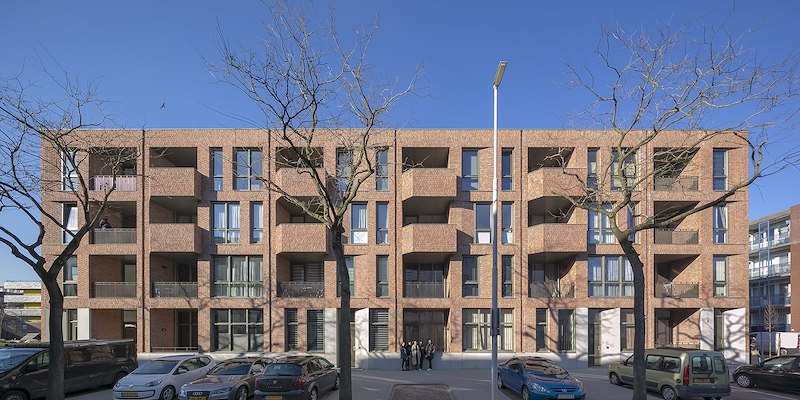De Slaghekbuurt in Rotterdam-Zuid heeft 54 ruime appartementen en 32 fijne nieuwe eengezinswoningen met een tuin gekregen. De hoogwaardige sociale huurwoningen zijn zorgvuldig ingepast in het bestaande stedenbouwkundige weefsel en sluiten subtiel aan op de woningen in de buurt. De moderne vertaling van de voor Rotterdam typische open portiek geeft de bewoners een veilige, sfeervolle entree.