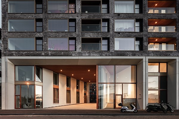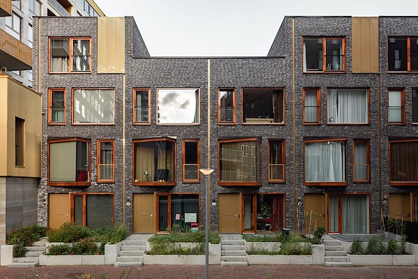 Voor de stadswoningen in de tussenstraten ontwikkelde Arons en Gelauff het ‘Maasraam’, een asymmetrische, driehoekige erker die ook daar zicht biedt op rivier en haven. De woningen van ArchitectuurMAKEN aan zuid- en westzijde maken het blok compleet.