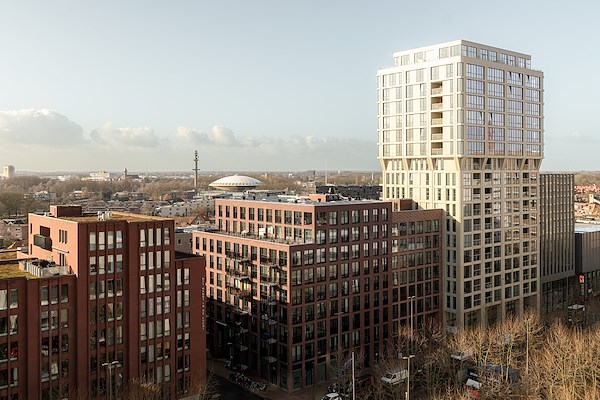 ‘De kroon van de toren vormt door zijn rondgaande uitkraging een markant baken binnen Strijp-S’