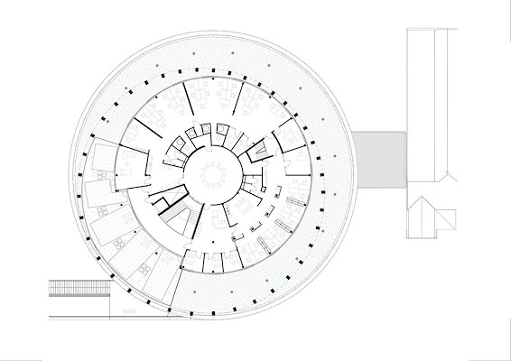 Doordat het gebouw rond is heeft het gebouw een kleinere omtrek dan een rechthoekig gebouw bij dezelfde oppervlakte. Energiebesparing begint bij de gebouwvorm, want energie die je niet nodig hebt is de meest duurzame vorm van energie. Het gebouw heeft vanuit de ronde vorm een compacte buitenschil, dus weinig afkoelend oppervlak.