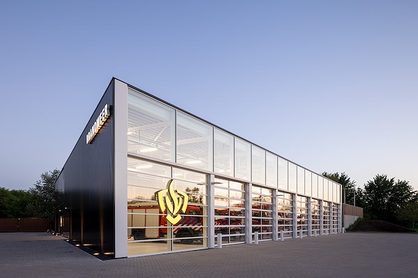 Een zwarte kijkdoos met een groot venster, zo is het ontwerp te typeren. Achter een minimalistisch gedetailleerde glazen pui staan de brandweerauto’s vol in het zicht van de voorbijgangers. De nieuwe brandweerkazerne is in synergie met de recent opgeleverde gemeentewerf ontworpen. Middels interactieve sessies met de stakeholders is gezocht naar een samenhangend en elkaar versterkend beeld.