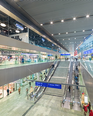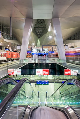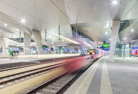 The city of Vienna started planning a new central station in 1995. Emperor Franz Josef had built the large terminus stations in Vienna at the end of the 19th century, believing that journeys would only ever start and end in the Hapsburg capital. So, the city of Vienna was the focus and centre point for several railway stations for over a hundred years. This changed with the opening of Vienna’s new Central Station a few years ago in 2014. The railway station is now actually set right in the middle of Vienna for the first time. The city no longer considers itself as the centre of the earth, but as a bridge linking East with West, and North with South. Today, Vienna Central Station is a hub handling over 1,000 trains and more than 100,000 passengers. It comprises three levels: rails and platforms are on the middle level, below them a shopping centre, and on the upper level there is the steel roof, which has already attained international renown and won architectural awards. It was designed by the architects Wimmer, Hoffmann and Hotz. Observed from a bird's eye view, the idea behind the iconic architecture becomes obvious: ten long steel bands, in sets of two, undulate rhythmically high above the tracks, dipping and rising in an offset woven pattern. They follow the tracks from west to east, symbolising the European axis from Paris to Bucharest. The roof is 430 metres long and measures 120 metres at its widest point. To illustrate the enormity of the dimensions, author Thomas Geuder writes: ?About 7,000 tonnes of steel were used in building the 37,000 m² roof structure, which is roughly the same amount as the Eiffel Tower in Paris.? The very size of the roof in itself posed special challenges for structural engineering, lighting the area below and fire safety. The construction consists of space frameworks spanning 38 metres. They are perforated by large, diamond-shaped skylights – 14 in total, making the interior area above the platforms a bright and support-free space. ALUCOBOND® panels are used as cladding on the underside of the folded bands. This is for both safety and design purposes: the composite panels, made of aluminium and a mineral core, fulfil the highest fire safety requirements and are also relatively light, an important factor for a roof of this size. An additional benefit is the special lighting effect the surface creates in the station: depending on how the panels are angled, the light reflected on the surfaces varies in brightness. For people passing by or passengers arriving at the station, the result is an exciting sequence of different light intensities, a special dynamic that makes Vienna, or rather its station, truly memorable even for people in transit who are just passing through.