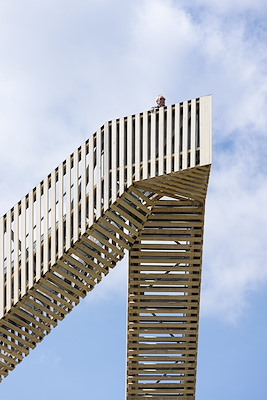 De uitzichttoren bestaat uit een verzinkt stalen constructie met Accoya bekleding. Daarbij is al het staalwerk zoveel mogelijk uniform in kleur uitgevoerd. De omlijsting van de toegangstourniquet is bijvoorbeeld gemaakt van dezelfde geperforeerde staalplaat als de traptreden. De Accoya houten bekleding krijgt in de loop van de tijd een natuurlijke vergrijzing, waardoor het kleurverschil tussen staal en hout kleiner wordt. Zo versterkt een ton-sur-ton kleurenpalet de hoofdvorm van de sculptuur.