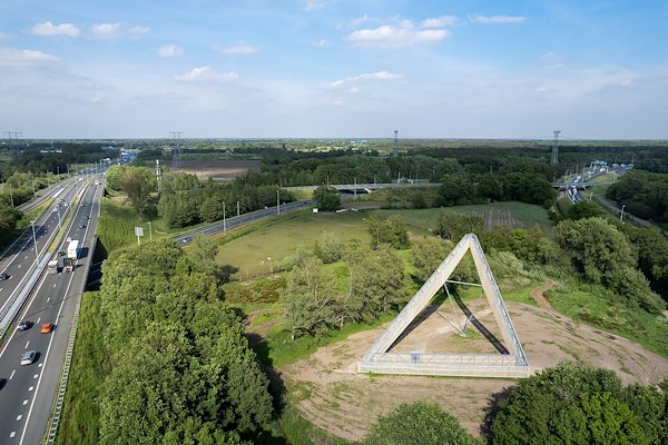 De uitzichttoren is zowel een herkenningspunt dat je vanaf elk punt op de snelweg anders beleeft, en een driehoek die drie landschappen mentaal met elkaar verbindt. Je ervaart de driehoek als poort of als wijzende punt van buitenaf, en als je de driehoek beklimt of afdaalt ervaar je de drie richtingen van de drie landschappen de ze “aanwijst”. De sculptuur moest daarom leesbaar en scherp gedetailleerd worden, gesloten vanwege de veiligheid maar open vanwege het uitzicht.