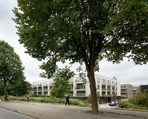 De woningen verschillen in grootte en opzet; de grotere woningen liggen aan de autovrije, groene openbare ruimte en de kleinere appartementen met balkon op de verdiepingen. De kleinere woningen zijn zo licht en ruimtelijk mogelijk gemaakt door ze breed en ondiep te maken, van verdiepingshoge ramen te voorzien en altijd een groot balkon te geven. In de plint van de gebouwen zitten per gebouw een wasserette en een gemeenschappelijke ruimte met keuken. Deze ruimtes, de keuken en de wasserettes zijn gekoppeld aan de entrees zodat de bewegingen door het gebouw elkaar kruisen en mensen elkaar tegenkomen.