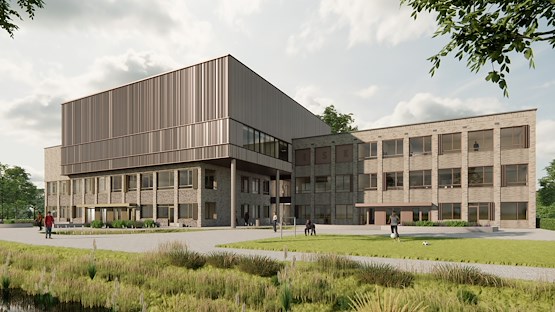 De Eenhoorn buurt, rondom de historische boerderij De Eenhoorn aan de Ringdijk in Amsterdam, met verouderde rijwoningen in lage dichtheid wordt getransformeerd naar een autovrije, parkachtige buurt met bouwblokken in een hogere dichtheid. Korth Tielens Architecten heeft twee sociale huur woongebouwen binnen dit plan ontworpen.