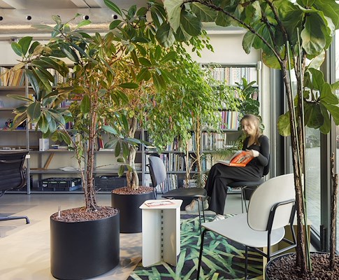 De verdieping biedt diverse omgevingen, open en afgesloten, waar medewerkers geconcentreerd kunnen werken, overleggen of samenwerken in teams. In de open ruimte kunnen verschillende teams kunnen aan groepswerktafels aan projecten werken.