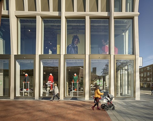 Het voormalig V&D-warenhuis is van een gesloten bastion veranderd in een uitnodigend complex dat extraverter is naar de omgeving door het oorspronkelijke betonskelet met cassettevloeren te strippen en te voorzien van nieuwe transparante gevels. “Interessant in relatie tot het oude V&D-gebouw is dat het complex is voorbereid op multi-tenant gebruik door entrees toe te voegen in de plint waardoor je meerdere winkels en eventueel andere functies kunt opnemen. Op plintniveau ontstaat nu een maximale transparantie”, vertelt Frederik Vermeesch, architect en partner bij Rijnboutt en eveneens betrokken bij het project. “De oost-entree van het Stadshart is op de juiste plek gecreëerd en aantrekkelijk gemaakt zodat het Buitenplein en het Handelsplein worden geactiveerd. Deze transformatie vormt een bijzondere manier om de stad verder te verdichten.”