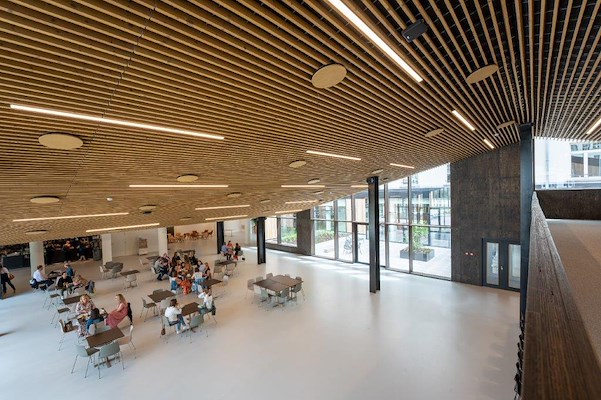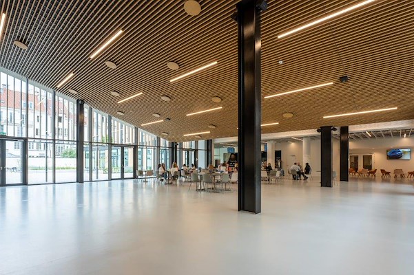 “Een plafond van een groot, modern gebouw als de AG Campus huisvest ook een hoop techniek. Veel plafondsystemen die hiervoor mogelijkheid bieden, boden niet de esthetische kwaliteit waar wij naar op zoek waren. De plafonds van Derako waren hierbij een aangename verassing. Een goede combinatie van functionaliteit en esthetiek. Daarnaast is ook de duurzaamheid belangrijk: hout is van nature een materiaal met een lage milieubelasting, en het ophangsysteem maakt het plafond circulair en gemakkelijk te demonteren.”