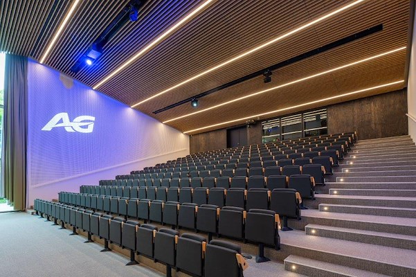 Dit zijn misschien wel de sleutelwoorden van de nieuwe campus. De AG Campus is eigenlijk in alle aspecten anders dan het vorige design, zo vertelt architect Thomas Stoffelen. “Voorheen was de uitbouw direct tegen het kantoorgebouw geplaatst, met een aaneenschakeling van vrij veel lokalen binnen. Hierdoor kregen de binnenruimtes een vrij donker en beklemmend gevoel, niet heel uitnodigend dus. De nieuwe aanbouw voor de campus bevindt zich nu wat verder van het gebouw af. Dit heeft als resultaat dat er meer licht binnenvalt en er meer zicht op de buitenomgeving is. Dat heeft een aangename invloed op de werksfeer.”