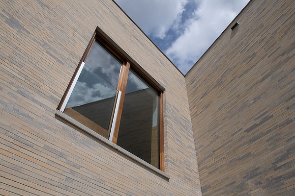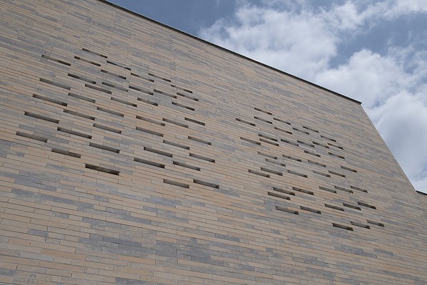 Om eenheid te creëren is de gevelschil in één materiaal opgetrokken. Gekozen is voor een betonnen metselsteen met een minerale toplaag, geïnspireerd op de Kunradersteen, die ARCHITECTENZAAK en MBI speciaal voor dit project hebben ontwikkeld. De Kunrader kalksteen is zeer kenmerkend voor de regio. Het BMV staat namelijk in het Geleenbeekdal, tegen de helling van het Plateau van Schimmert. Feron wilde de historie van de regio graag terug laten komen in het gebouw en ging op zoek naar een hoogwaardig, maakbaar en betaalbaar alternatief voor het schaarse Kunrader kalksteen. “MBI heeft onder andere de langformaat gevelsteen
